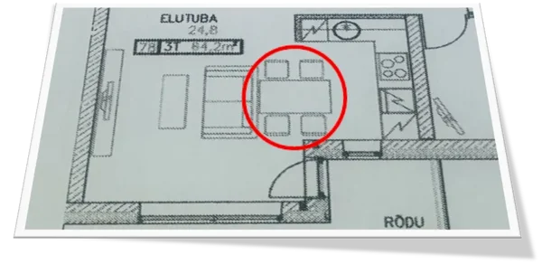 Näide: söögilaud takistab mugavat liikumist köögi ja elutoa vahel